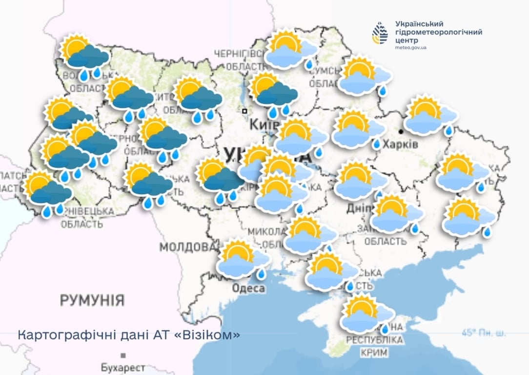 "Атмосферный фронт из Западной Европы принесет дожди на запад, север Украины, а также в Винницкую, Черкасскую и Кропивницкий с районами. Дожди — небольшие и умеренные", — прогнозирует народный синоптик Наталья Диденко.