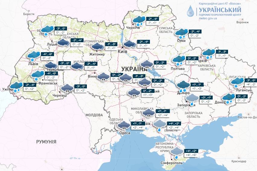 В Украине завтра, 10 декабря, ожидается облачная погода. В большинстве областей страны будет идти снег и дождь. Также на дорогах будет гололед, поэтому водителям следует соблюдать осторожность во время поездки.